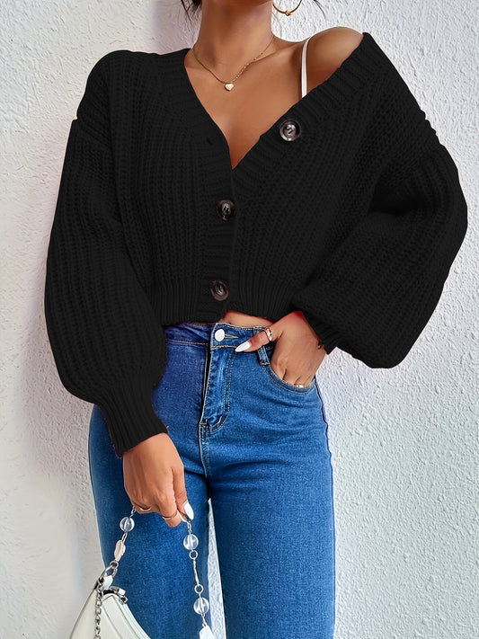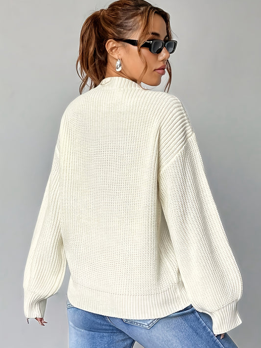 The Santa Monica Apparel™ | Elegant V-Neck Lantern-Sleeve Sweater