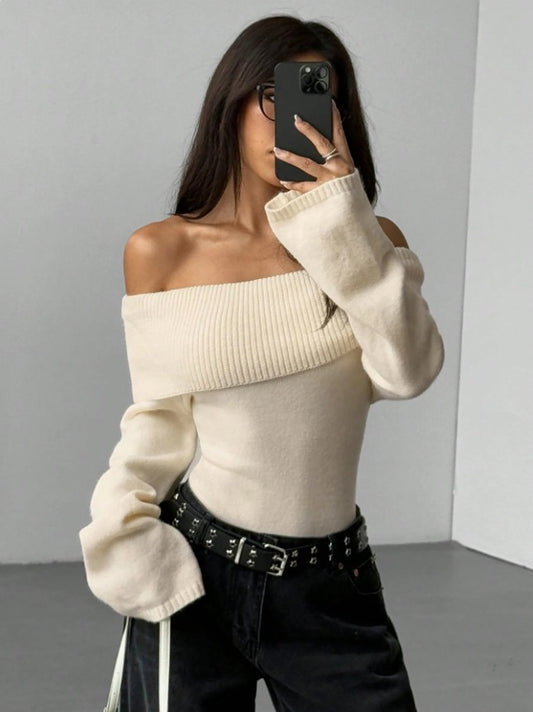 The Santa Monica Apparel™ | Elegant Off-Shoulder Rib-Knit Sweater