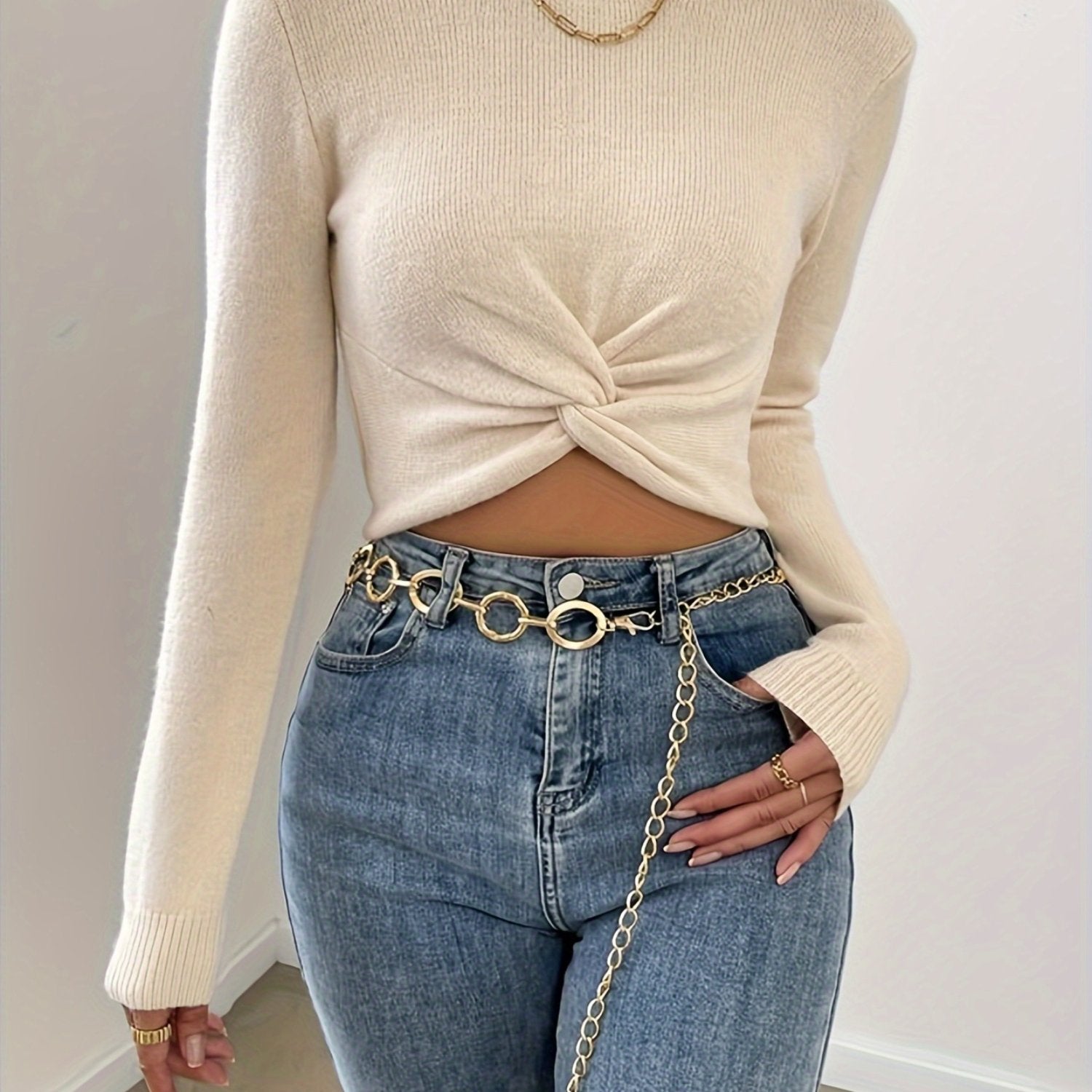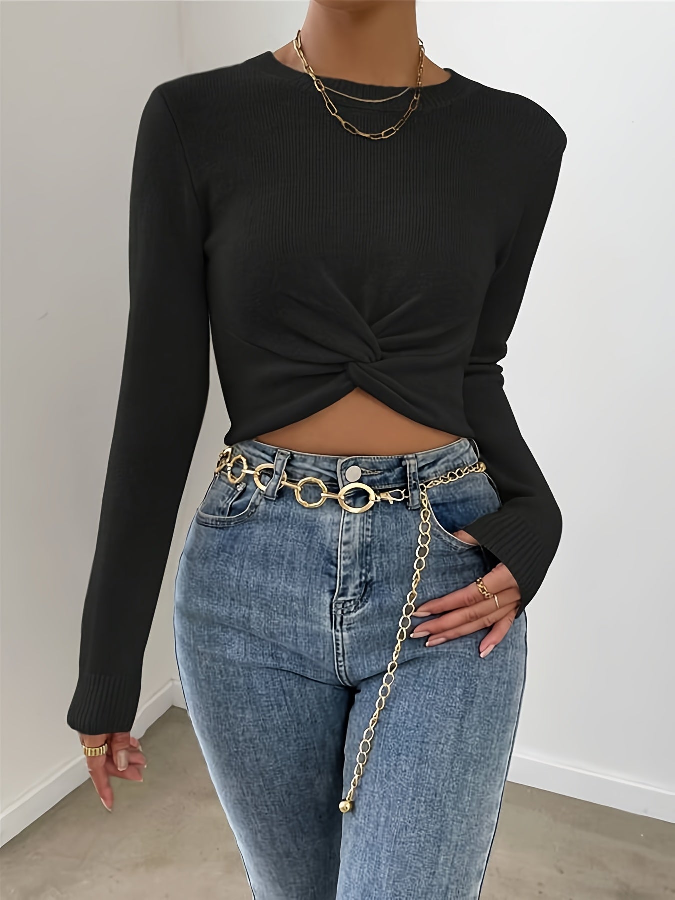 Elegant simplicity meets modern comfort. This slim-fit sweater is crafted from a soft, lightweight knit that contours the body with a smooth, flattering drape. The classic round neckline and clean silhouette make it a versatile staple for both casual and elevated looks — perfect for layering through cooler seasons or wearing solo for understated sophistication.