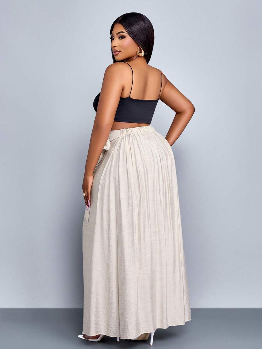 The Sunset Wrap Skirt brings effortless elegance to any occasion with its flowing wrap silhouette and chic knot detail. Designed for ease and movement, it features a flattering thigh split and soft drape that transitions seamlessly from casual evenings to refined outings.