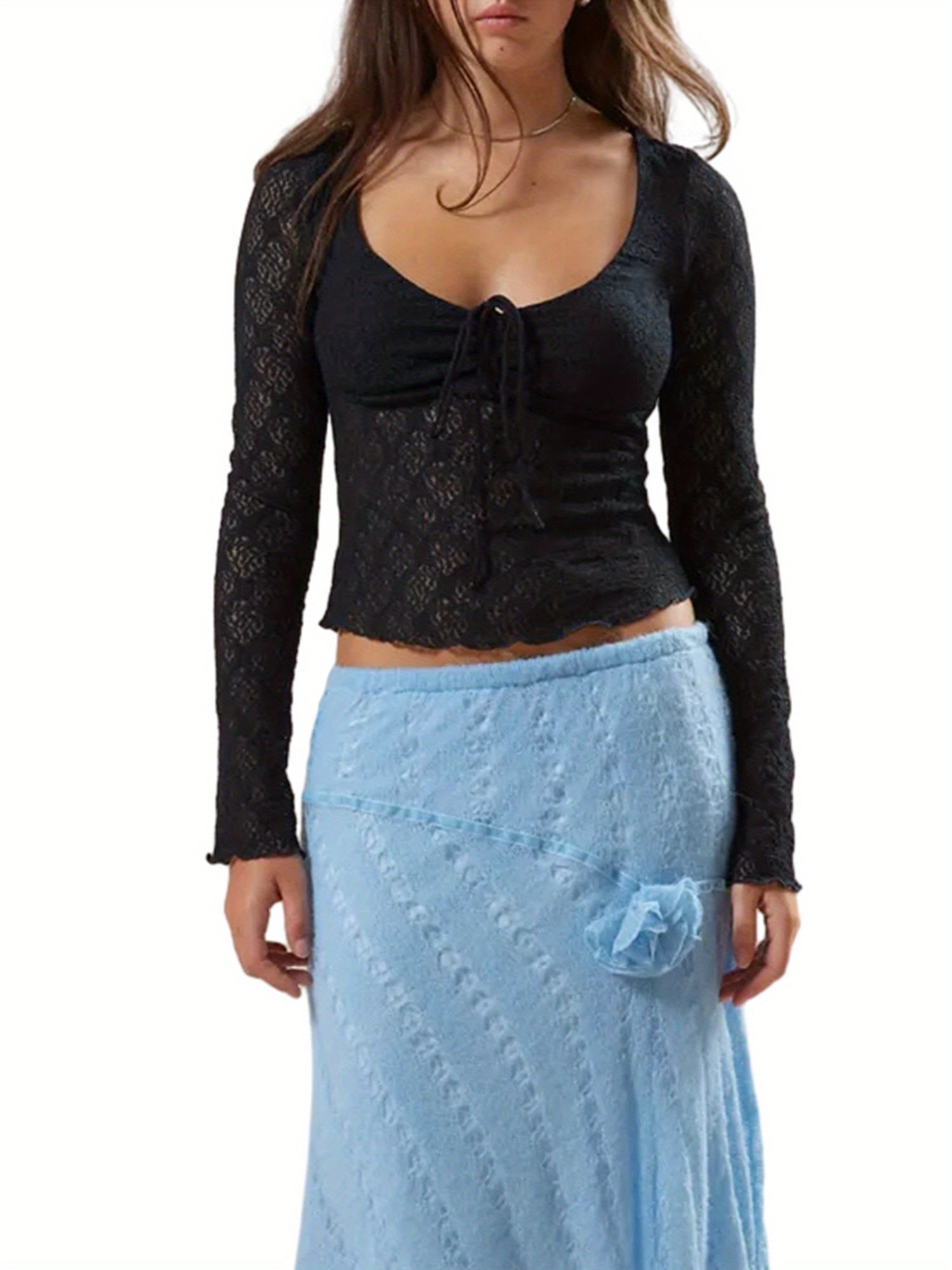 Playful, flattering, and effortlessly on-trend — this solid-color top blends Y2K-inspired style with everyday versatility. Crafted from a soft cotton blend with subtle stretch, it offers a smooth, comfortable fit that moves with you. The adjustable drawstring details add a touch of texture and shape, making it perfect for stylish layering or stand-alone looks year-round.