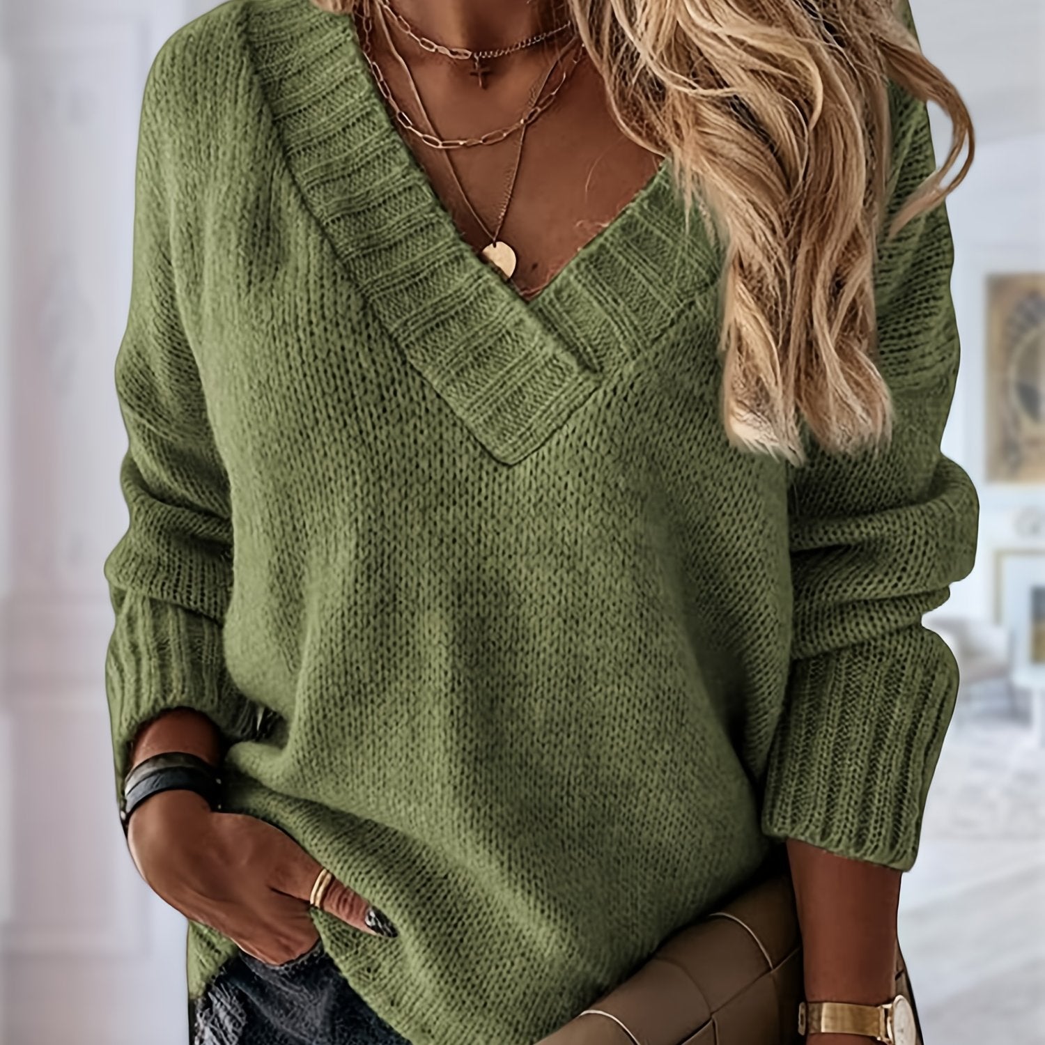 Timeless, cozy, and effortlessly versatile — this classic V-neck sweater is crafted from soft acrylic for warmth and comfort through fall and winter. The mid-level stretch ensures a relaxed yet flattering fit, while the clean solid-color design makes it an easy match for any outfit. Perfect for layering or standalone wear, it’s a cold-weather essential with everyday appeal.