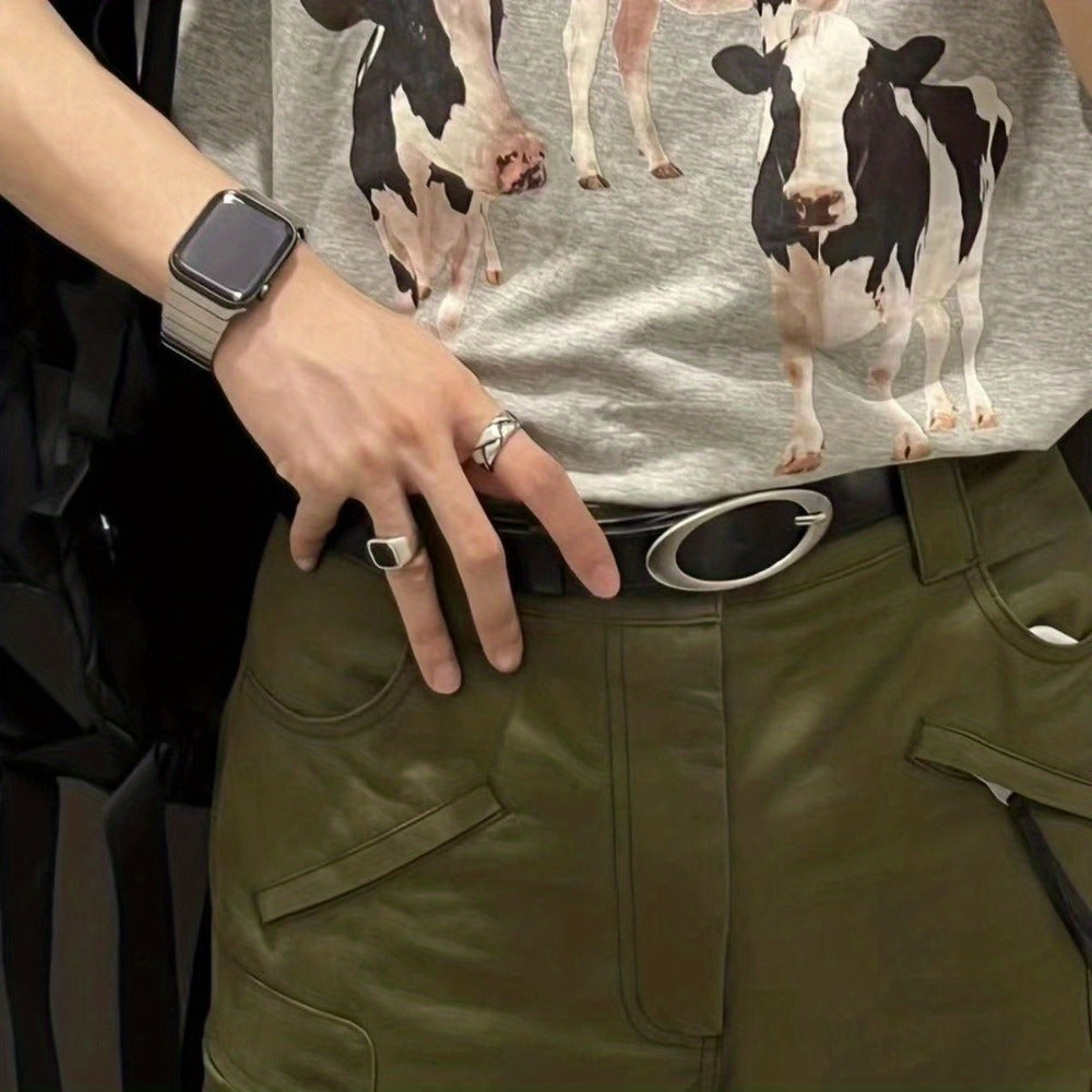 A vintage-inspired PU belt accented with bold rivet details. Featuring a copper buckle and woven finish, it adds a touch of edge and sophistication—perfect for elevating mature, refined looks.